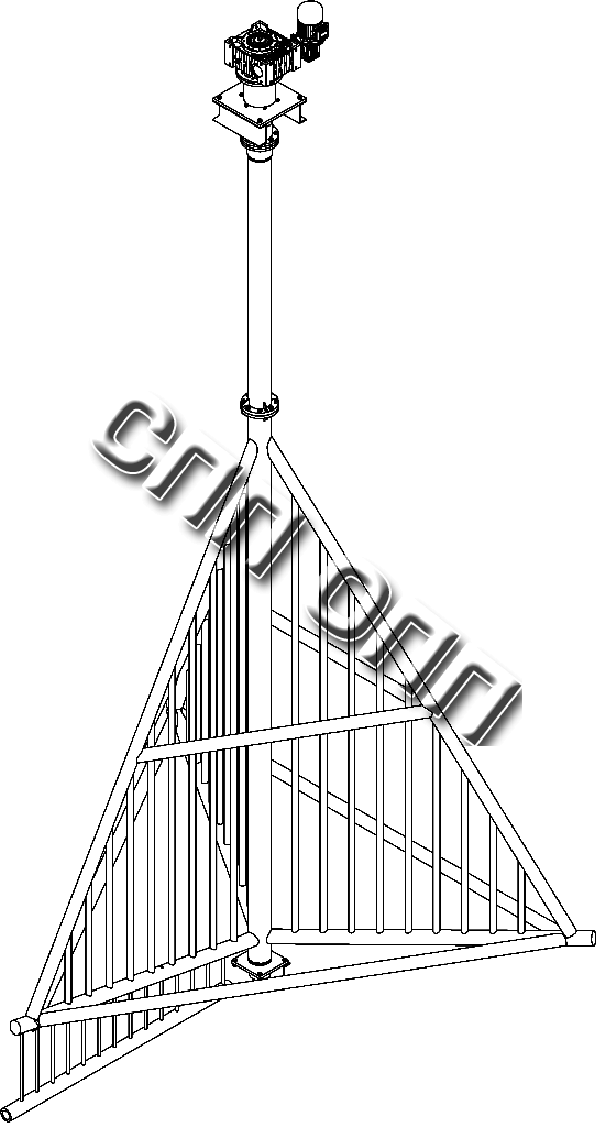 мешалка дефекатораДля данного проекта была разработана электромешалка грабельного  типа укомплектованная импортным мотор-редуктором в общепромышленном исполнении.